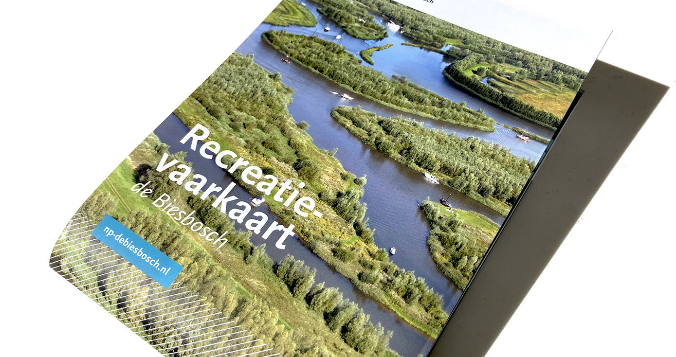 OP HET WATER Nieuwe Recreatie- vaarkaart de Biesbosch. Deze bijzondere vaarkaart is mede mogelijk gemaakt door Nationaal Park De Biesbosch in samenwerking met diverse partijen. Als uitgangspunt heeft BuroGlaap een satellietbeeld genomen.
